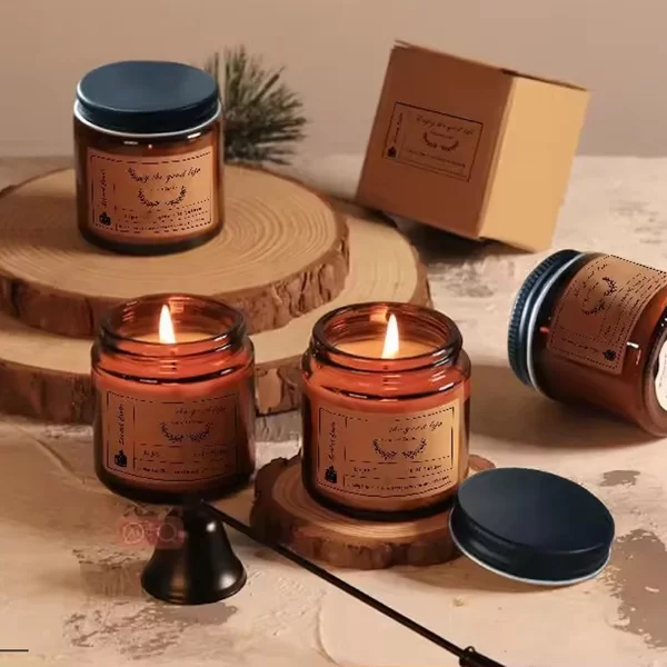 Wir präsentieren unsere Kerze mit reinem, natürlichem Sojabohnenwachs und ätherischem Öl – verpackt in einem eleganten braunen Glasbehälter. Diese umweltfreundliche Kerze wird aus 100 % natürlichem Sojawachs sowie hochwertigen ätherischen Ölen hergesTellt und bietet eine sauberere, langlebigere Brenndauer. Erhältlich in zwei vielseitigen Größen – perfekt geeignet, um ein schichtiertes Dufterlebnis im Zuhause zu schaffen oder als komplettes Geschenkset. Jede Kerze ist so konzipiert, dass sie Ihren Raum mit einer beruhigenden, aromatischen Atmosphäre erfüllt – daher eignet sie sich ideal für den täglichen Gebrauch zum Wohlbefinden sowie als durchdachtes Geschenk.